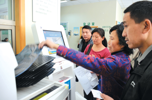4月9日上午,笔者在影像科看到,病人在窗口预约检查时,护士会给患者一张纸条,上面记录了病人的姓名、性别、年龄、检查时间、取报告时间与条形码。放射科、CT室门口均放置了自助打印机,病人在自助打印机上用条形码一刷,一分钟后,机器就会“吐”出检查报告和胶片。