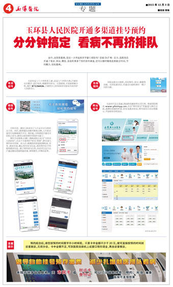 如今,去医院看病,您还一大早起床死守窗口排队吗?您就OUT啦!近日,我院先后开通了电话、网站、微信、自助机等多个预约挂号渠道,您可以随时随地选择就诊时间,节约精力,轻松看病。