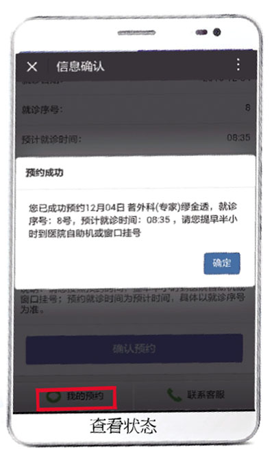 预约成功后,请您按预约时间提早半小时来院。只要卡中金额不少于20元,便可直接按预约时间到诊室就诊,无须分诊。卡中金额不足,可到医院自助机上或窗口预存现金,再去诊室候诊。