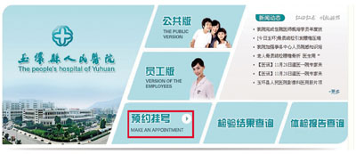 无论时代怎么发展,网站的功能依然无可代替。登录医院网站www.yhrmyy.cn,点击“预约挂号”直接进入预约页面,选择你需要的科室、医生及就诊时间,预约成功自动出现提示,并会收到手机短信。