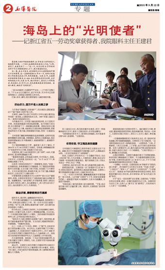 ——记浙江省五一劳动奖章获得者、我院眼科主任王建君