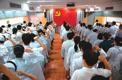 简短的仪式后,全体党员立即投入到繁忙的医疗工作中。通过开展“重温入党誓词”活动,党员的思想得到了一次洗礼和升华,进一步坚定了信仰,增强了党性观念,激发广大党员再创新业绩的工作热情。