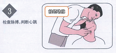用食指及中指指尖先触及气管正中部位,然后向旁滑移2-3cm ,在胸锁乳突肌内侧触摸颈动脉是否有搏动(非专业人士不要求)