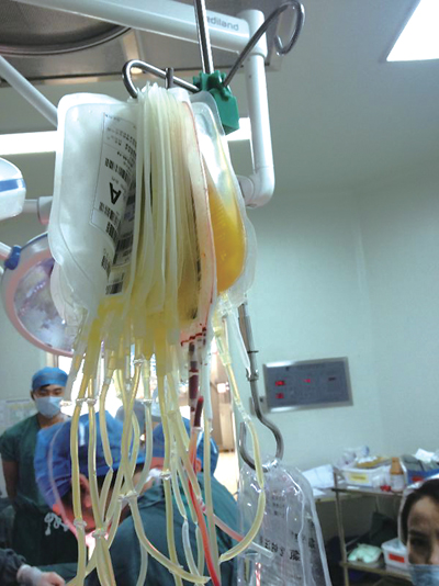 罗乐平介绍,刘女士凝血功能障碍,全身多处出血,所以抢救时用血量非常大。此次手术输入血制品达7500毫升,一个体重60公斤的个人体内血液量约5000毫升,相当于将她体内的血换了一个半的人的血量。