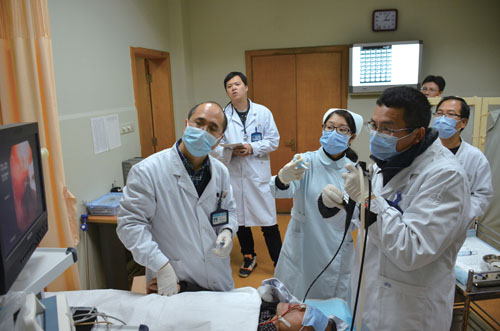 呼吸内科副主任陈彦凡为疑难病人开展纤维支气管镜检查