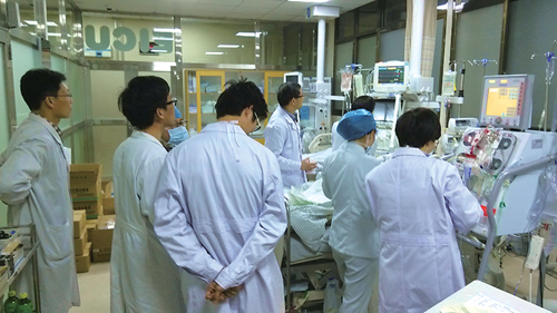 “病人多脏器功能衰竭,病情变化快,医护人员不敢有一丝的放松警惕,守候在患者床边,进行实时观察和严密监护,及时捕捉着和判断着患者生命体征的细微变化。除了急诊科医护人员加班加点外,ICU还派了六名护士陆续参与抢救。”急诊科护士长杨芳霞说。