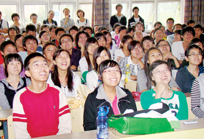 10月1日,一场全球最大的生日庆典——新中国60周年华诞,将每一个中国人的目光都聚焦在北京天安门广场。校园内,同学们聚集到一起,目不转睛盯着屏幕,不愿错过庆典的每一个场景。一张张年轻、灿烂的笑脸纵情绽放,写满了喜悦、激动与自豪。