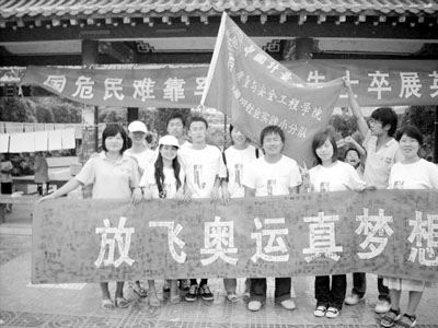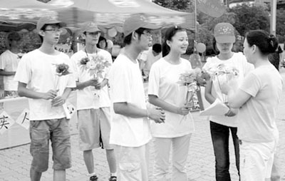 活动的主持人、原青年志愿者总队队长孙健峰告诉我们,为了做好活动的各项准备工作,几个学生骨干也是埋头苦干了近半个月。设计活动、准备道具、购买礼品、排练节目……“因为时间太紧,一些新的节目来不及排练,许多已经回家的学生也被我们叫了回来,特别是有文艺特长的学生,直接就上节目了。”