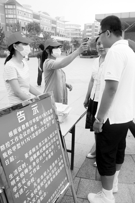 学校在6个车站接待点和学校大门口均设置了体温检测点,前来报到的新生和陪同的家长都必须先经过体温检测关。