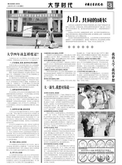 如果能重回大一,我一定会权衡好学业与课外活动的关系,充实地过好每一天。大一的我心太野,教室里坐不住,恨不得整天都去搞社团活动和学生会事务。正因为把时间都花在了课外,所以期末考的结果可想而知,我挂了两门课,其他课的成绩也低得吓人,有好几科都是刚刚及格。补考没过的我只能重修,每个星期六,当别人放松的休息时,我却要去上课。这个深刻的教训,让我开始重新定位自己和审视自己,能安安静静地在学校读书的时间还是很有限的,我们应该珍惜,不该浪费。