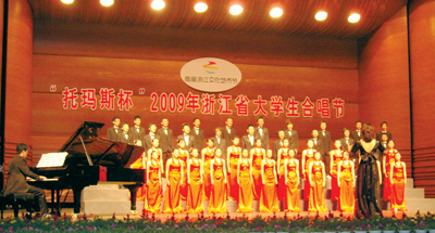 9月20至22日,以“十月的阳光”为主题的2009年浙江省大学生合唱节在绍兴举行。我校合唱队凭《娄山关》、《把我的奶名儿叫》两首作品,获得合唱节甲组一等奖的好成绩。此外,我校还荣获合唱节优秀组织奖,施淑静老师荣获优秀指挥奖和优秀指导老师奖,张磊同学荣获优秀伴奏奖。(金民华)
