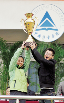 “计量杯”是本届校运会在奖项设置上做出的一项改革与创新。如同奥运圣火传递,“计量杯”对我校体育事业的发展有着重要与深远的意义,他传递的是体育文化与体育精神,象征着和谐与合作,蕴含着友谊和团结。林建忠校长亲自为“计量杯”揭幕。最后,信息工程学院以第二十四届运动会团体总分第一的成绩,勇夺首座“计量杯”。
