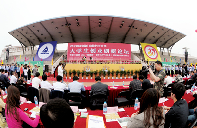开幕式后,举行了大学生创业创新论坛,李开复、牛根生、俞敏洪联袂论道,将自身创业经验与在场学生一起分享,俞敏洪好友、2008北京残奥会火炬手侯斌也前来助阵。