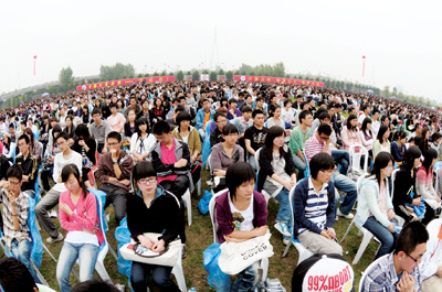 创新工场(Innovation Works)董事长兼首席执行官李开复、蒙牛集团创始人牛根生、新东方教育科技集团总裁俞敏洪,当三位中国最著名的明星企业家同时出现在中国计量学院万人体育场时,现场立即引起了一阵骚动。要签名的,想合影的,不少急性子的同学以百米冲刺的速度跑到偶像面前,掏出相机一阵狂拍。