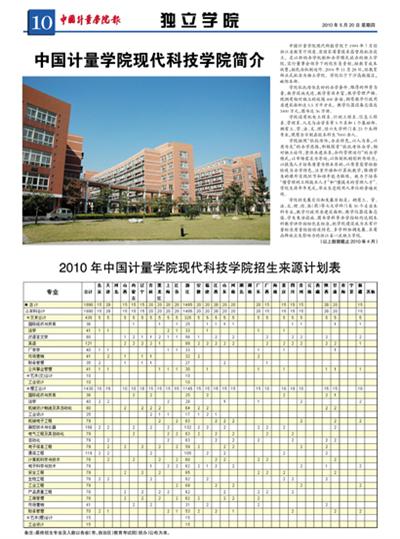 | 中国计量学院现代科技学院2010年普通高校招生章程 | 2010年中国计量学院现代科技学院考生问答 |