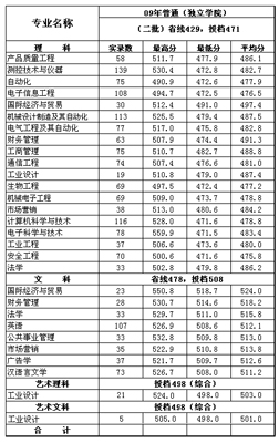 | 中国计量学院现代科技学院2009年普通高校招生录取情况统计表 | 中国计量学院现代科技学院2009年在浙江省录取情况 |
