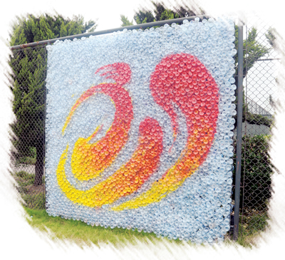 用1500个可乐瓶拼出的“挑战杯”会徽