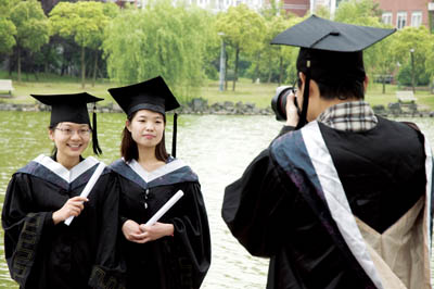 6月27日一大早,来自艺术设计与传播学院环境艺术设计专业06工程设计3班的桂鸿斌便站在画满“计量·爱”的马路边,凝神拍摄着曾经无比熟悉的“中国计量学院”的校门。