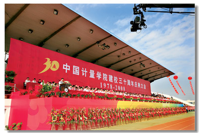 2008年10月18日,中国计量学院建校30周年庆典大会隆重举行。浙江省副省长王建满,国家质检总局党组成员、国家标准化管理委员会主任纪正昆,浙江省政协副主席陈艳华,浙江省军区少将、政治部主任郭礼云等领导和王启明、陈子元、周炳锟、阙瑞麟、李同保、汪槱生、沈之荃、任继周、庄松林、岑可法、张钟华、董石麟、陈星旦、何新贵、郑树森、陈宗懋等16位中国科学院、中国工程院院士到场祝贺。