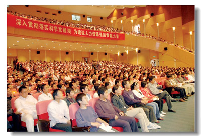 2009年3月到8月,我校紧紧围绕“强化特色创优势,推进转型上水平”的实践载体,开展了深入学习实践科学发展观活动。学习实践活动中,我校坚持把学习讨论贯穿始终,坚持把领导带头贯穿始终,坚持把群众路线贯穿始终,坚持把校院两级联动贯穿始终,坚持把过程指导贯穿始终,坚持把与中心工作紧密结合贯穿始终。