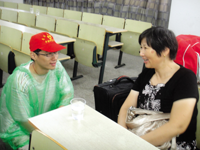 质安学院09工业1班的戴静表在接到第一个新生前,衣服就已经被大雨浇透了。但他依然兴奋。“我能感觉到大一新生的眼里闪烁着的神采,那是对大学生活的美丽憧憬。和他们一起走的时候也会聊一聊,帮助他们了解学校,消除一些他们的羞涩感,当然也会想起自己大一刚进学校时候的害羞。迎新志愿者,其实也是一种传承吧。”他笑着说。也正是这种志愿者精神的传递,让人文学院的新生黄凯达在放下了自己的行李后,转身也加入了迎新志愿者的行列。
