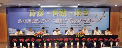 本报讯 “诗意·奋进·融合——全国主流媒体2010年浙江高校行”大型采访活动于9月25日在我校正式启动。省委宣传部副部长、外宣办主任吕建楚,省教育厅副巡视员、新闻发言人夏建勇出席启动仪式,并为媒体代表授旗。我校党委书记于永明,党委副书记陶伟华出席仪式。