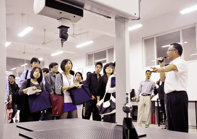 启动仪式结束后,来自全国40余家媒体的记者兵分两路,分别参观了我校国家磁性材料及其制品质量监督检验中心、浙江省“重中之重”学科室验室、天问科技活动中心实验室及计量史馆和校史馆。