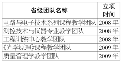 学校于2007年启动了“教学名师培养与教学团队建设计划”,推荐优秀团队和个人参加教育部“质量工程”与省“行动计划”相关项目的评审。2009年,计量测试工程学院李东升教授牵头的“传感器技术课程教学团队”入选国家级教学团队;2008-2009年,5个团队被评为浙江省高等学校省级教学团队;先后有6位教师被评为浙江省教学名师,7位教师被评为浙江省教坛新秀。