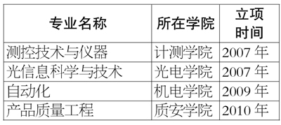 2006年来,学校新增11个普通本科专业、2个第二学士学位专业,普通本科专业达到45个,形成了以工、理、管为主体,文、法、经、医(药)多学科协调发展,有一定计量特色的专业体系。学校4个专业被列为国家级第一类特色专业建设点。