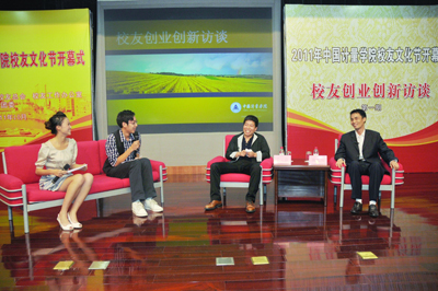 本报讯 在学校建校33周年之际,中国计量学院首届校友文化节也拉开了帷幕。2011年10月9日,校长林建忠宣布校友文化节开幕,并欣然为“校友创业创新访谈”题词。