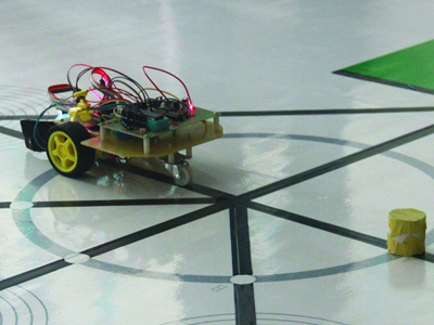 一个个轮式小型机器人,在比赛场地里来回移动,将不同颜色、形状或者材质的物体分类搬运到不同的对应位置。这是12月21日我校举行的第四届创新设计大赛暨智能机器人搬运比赛现场的场景,它模拟了工业自动化过程中自动化物流系统的实际工作过程。据悉,比赛中表现优秀的学生组将代表学校参加2012年7月的中国机器人大赛。 (本报记者/ 文 耿卓男/摄)