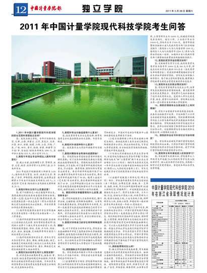 2011年中国计量学院现代科技学院普通高校招生章程2011年中国计量学院现代科技学院考生问答