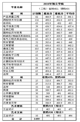 中国计量学院现代科技学院简介中国计量学院现代科技学院2010年在浙江省录取情况统计表