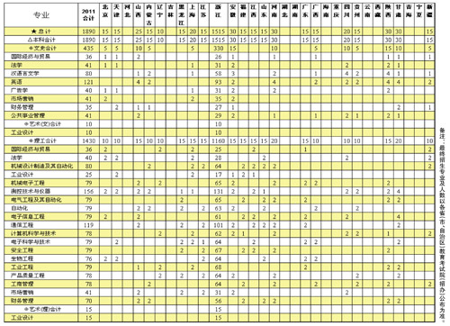2011年中国计量学院招生来源计划表
