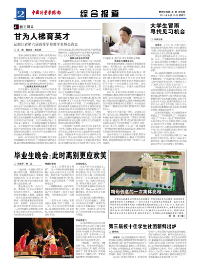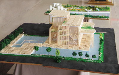 用货运木托建造的可移动式住宅模型、神情可爱的东巴吉祥物、画着传统年画图案的系列T恤和包包……这可不是在什么创意用品的商店里,我们只是在学校的毕业设计展里闲逛!从喷绘展板到实体模型,6月7日至10日,我校2007级艺术设计专业毕业生毕业设计(创作)作品展在图书馆举行,共展出毕业设计作品48件,其中环境艺术专业作品27件,视觉传达专业作品21件。同学们的新鲜创意让人忍不住驻足欣赏,副校长俞晓平、宋明顺也兴致勃勃地参观了展览。(吴  烨  文/摄)