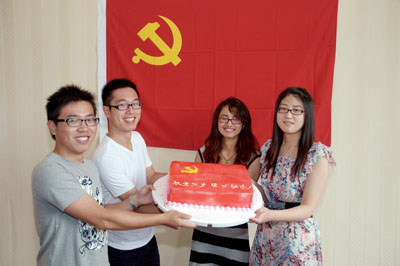 “这是我最难忘、最特别的一次生日party。”同样是7月1日生日的09级研究生李小瑞望着总支为大家特别制定的“党旗蛋糕”,开心到不舍得下手去切开蛋糕。“我出身在甘肃农村,虽然我没有经历过那个战火纷飞的动荡年代,但我亲眼看着家乡人民的生活发生了翻天覆地的变化,我深刻地感受到没有共产党就没有新中国,没有共产党就没有今天的幸福生活。我要真心地感谢伟大的党,祝您生日快乐,永葆青春。”