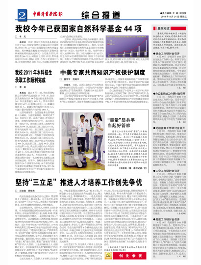 本报讯 截止8月14日,我校及我校独立学院顺利完成全国30个省、市、自治区及港澳台共计58个批次招生录取任务。2011年共录取新生5370人,其中中国计量学院3477人(港澳台新生1人、新疆内地班16人、新疆少数民族预科班58人),中国计量学院现代科技学院1893人。