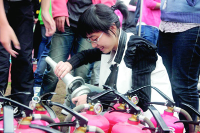 快速连接消防水带、穿越火线、灭火比赛……10月30日,我校第二届消防安全趣味运动会火热开赛。比赛旨在使大家进一步了解掌握消防器材的基本性能和使用方法,提高学生在发生火灾(警)时的疏散、自救和灭火等处置能力。图为比赛现场一位女生正在连接消防水带。(本报记者/文 余子洋/摄)