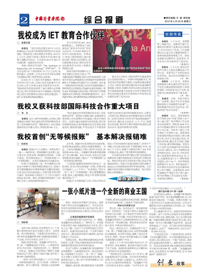 本报讯 “我们学校位置在杭州,与北京距离较远,但这并不影响我们培养的学生走向国际。”我校机电工程学院院长李青说。2012年1月5日,我校与英国工程技术学会(IET)签署了战略合作协议,正式成为2012年IET在中国的第一批教育合作伙伴。