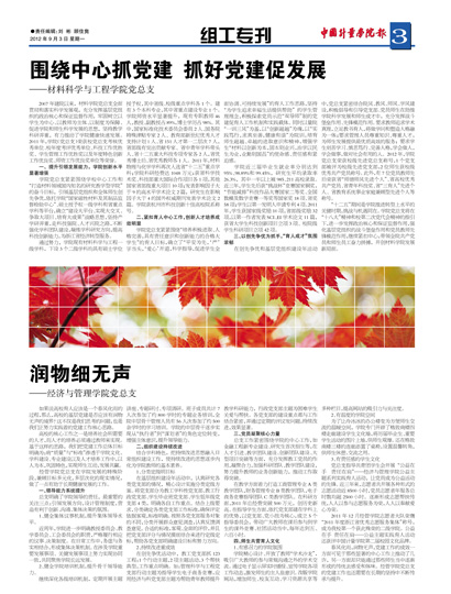 “十二五”期间是学院推进转型上水平的关键时期,挑战与机遇同在。学院党总支将在“十八大”精神和校第二次党代会精神的指引下,进一步发挥政治核心和保证监督作用,强化基层党组织的战斗堡垒作用和党员教师先锋模范作用,继续紧扣中心,带领全院共产党员和师生员工奋力拼搏,开创材料学院发展新局面。