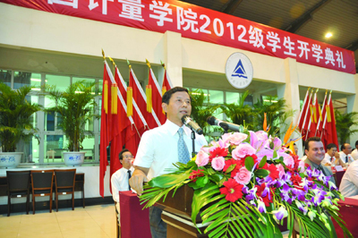 今天,这所张扬而又低调的学校,在这秋高气爽的傍晚,迎来了意气风发的2012级新生。首先,请允许我代表学校对各位同学如愿以偿地成为大学生和研究生表示衷心的祝贺!向从世界各地汇集而来的你们表示热烈的欢迎!向长期以来精心培育你们,并把你们托付给中国计量学院的家长们表示诚挚的谢意!