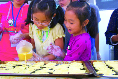 本报讯 食品安全一向是市民关注的焦点。9月22日-23日,杭州市经济技术开发区科学技术局、杭州市经济技术开发区科学技术协会联合主办,我校食品安全协会承办了“关注安全,科学饮食”活动。活动邀请市民们参观饮料生产线、食品加工车间,感受和体验食品加工、检验等环节。市民们还在我校食品检测实验室,学习如何制作和检验食品。图为孩子们正在学习制作蛋挞。(李 佳/文 余子洋/摄)