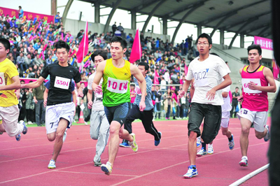 去年以10秒90的成绩成功打破男子甲组100米校纪录的计测学院张碧丰今年再次摘得百米金牌,四年来他一个人为学院奉献了140分。“原本不想参加这次运动会了,大四要准备考试。但是为了学院冲击三连冠,最后还是决定参加。”最终,计测学院第三次获团体总分第一,成功将‘计量杯’永久地留在了学院。