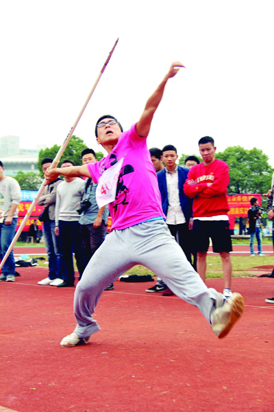 现代科技学院机电系的金曙,以13.04米的成绩打破了由他自己保持的男子组铅球校纪录。“这次来参加比赛,一是来检验一下自己的能力,二是希望能给学院多攒点分。”能够取得优异的成绩,并且一次次刷新自己的纪录,不是一朝一夕便能练就的。作为校队成员的金曙,平时会进行专项的体能训练,“会进行扔铅球训练,也会在背部放上杠铃片做俯卧撑,锻炼强度很大。”