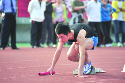 男子青年组200米比赛,围绕操场跑道半圈的赛程不算长,考验的是运动员的爆发力。13汉教2班的曹文轩没有取得理想的成绩,但他却始终保持着良好的心态,不气馁不沮丧,“重新证明自己才是参加这次比赛的目的。”