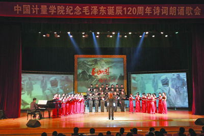 时而浅颂低吟,时而慷慨激昂,时而豪情满怀,时而抑扬顿挫,在12月15日晚举行的中国计量学院纪念毛泽东诞辰120周年诗词朗诵歌会上,同学们用一首首充满深情的朗诵生动再现了毛主席波澜壮阔的一生。校党委书记胡建成、副书记陶伟华与1000多名同学一起欣赏了这场精彩的表演。胡书记还现场朗诵了《沁园春·雪》、《长征》、《七律(二首)·送瘟神》、《满江红·和郭沫若同志》、《咏梅》等,并与参演同学合诵了《水调歌头·重上井冈山》。校大学生艺术团带来的演唱、演奏节目也为晚会增光添彩。(林 见)