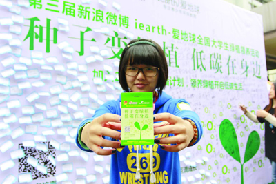 种子变绿植,低碳在身边。3月23日,由共青团中央学校部等共同发起的第三届全国大学生绿植领养活动在我校正式启动。活动现场,组委会向大学生免费发放了近1000份甘野菊、三叶草、金盏菊等绿色植物种子,并开展了丰富的环保知识竞猜、我为环保代言、绿色环保宣言微博互动等活动,宣传环保意识,传递环保理念。(本报记者/文 余子洋/摄)