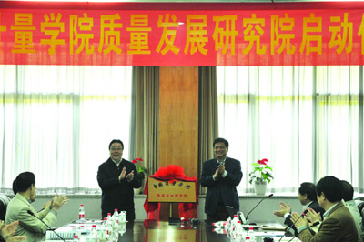本报讯 4月12日,我校隆重举行中国计量学院质量发展研究院启动仪式。中国标准化协会理事长纪正昆,中国计量学院党委书记胡建成、校长林建忠、副校长宋明顺,浙江省质量技术监督局、浙江省标准化研究院、杭州市质量技术监督局等相关单位部门负责人,以及我校相关职能部门负责人和质量发展研究院骨干教师参加了启动仪式。启动仪式上胡建成书记与纪正昆理事长一同为质量发展研究院揭牌,林建忠校长为纪正昆理事长颁发了质量发展研究院名誉院长聘书,启动仪式由副校长宋明顺主持。