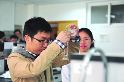 4月10日,我校2013年硕士研究生复试正式展开,复试中突出对考生思想品德、综合素质、专业技能、科研能力、创新精神和实验动手能力等方面的考核。图为参加生命科学学院研究生复试的学生正在进行实验能力的测试。