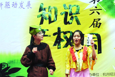 “哪里有江湖,哪里就需要产权保护。”4月24日,一场由知识产权学院学生原创的知识产权微话剧在生活区开演,拉开了我校第六届知识产权周的序幕。在宣传周期间,学院将在校园、社区、企业,开展专利申请写作讲座、商标知识竞赛等丰富多样的活动,大规模宣传知识产权,努力营造保护知识产权的社会氛围,提高公民的知识产权意识。(本报记者/文 宁明渊/摄)